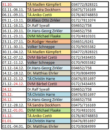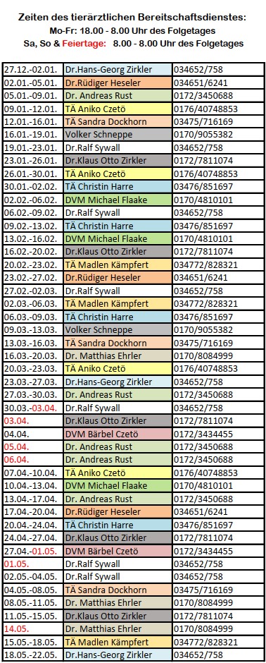 Notdienstplan Kleintiere Landkreis Mansfeld-Südharz 2026